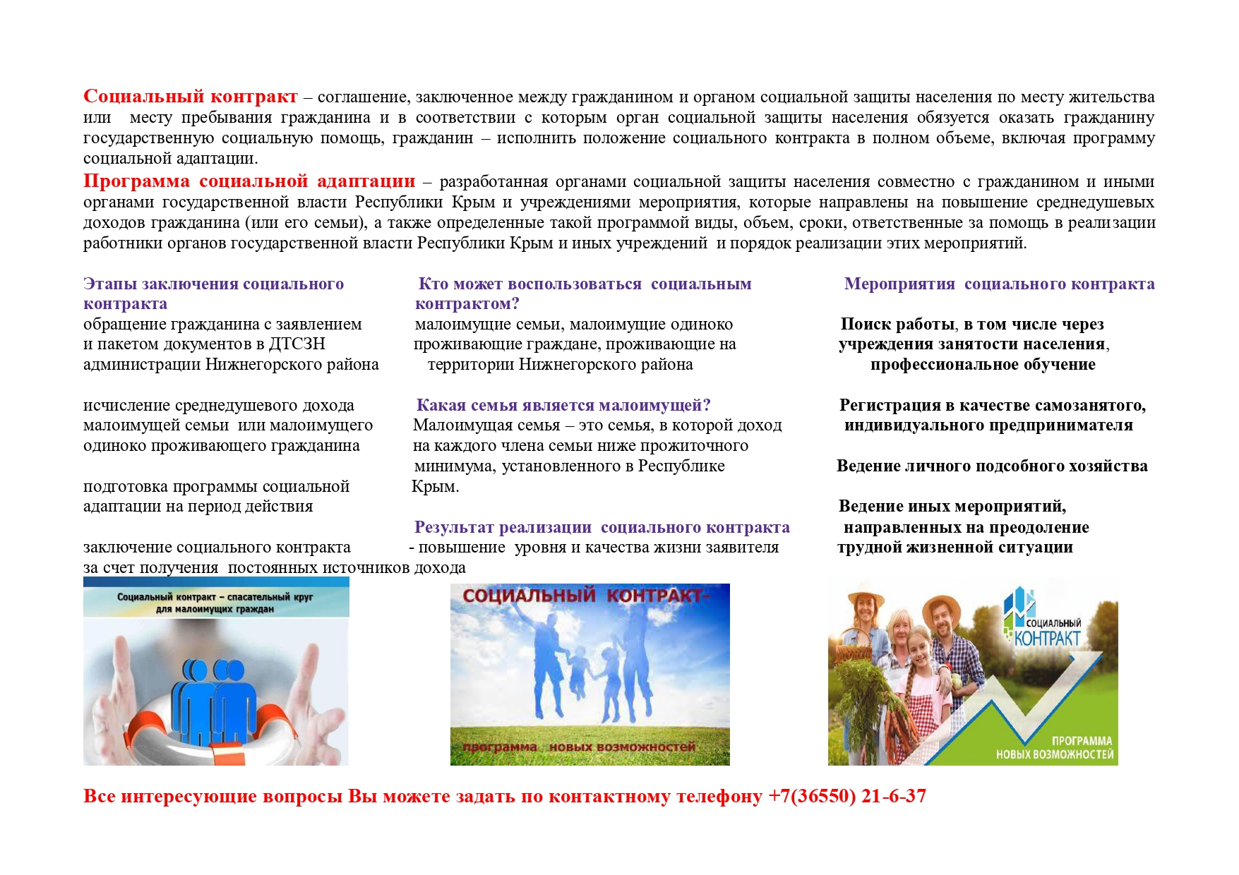 Государственная социальная помощь на основании социального контракта в Республике Крым